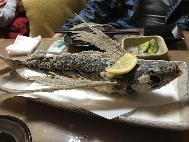 お刺身の盛り合わせもボリュームたっぷり。屋久島はトビウオが名物だそうで、丸ごとのから揚げを頼みました。羽根?ヒレ?がカリッとして美味しいです、もちろん身も。