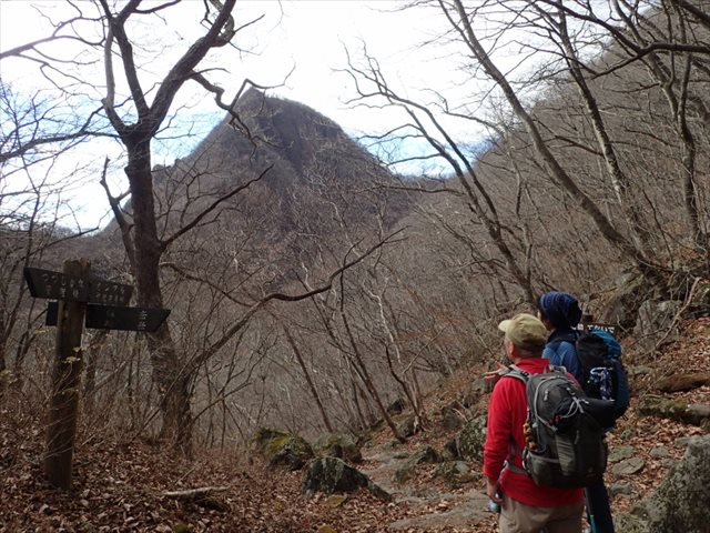 二ツ岳とオンマ谷方面への分岐、正面は相馬山