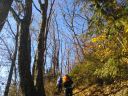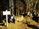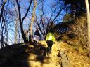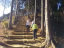 そこから日の出山に向かいました。階段の登りが続いていたので、ザックをデポして、空身で長い階段を登りました。