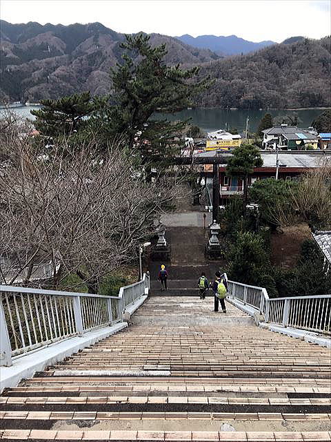 長い階段を相模湖目指して下ります