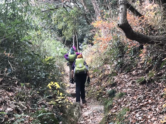 まだチラホラ紅葉が残っている緩やかな登山道を行く