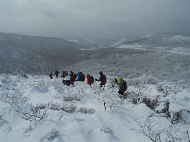 雪舞う中の下山
