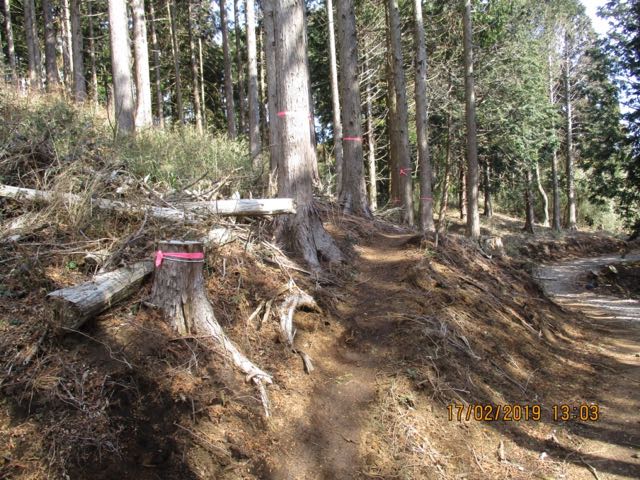 上のピンクテープの方の道を行きます