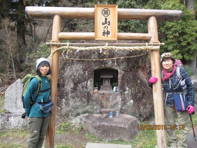 大岩をくり貫いて山の神が祀られています。鳥居が新しい