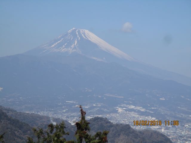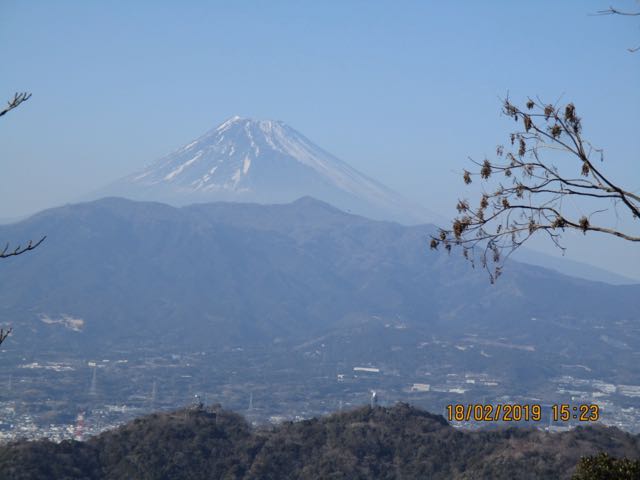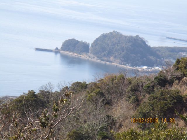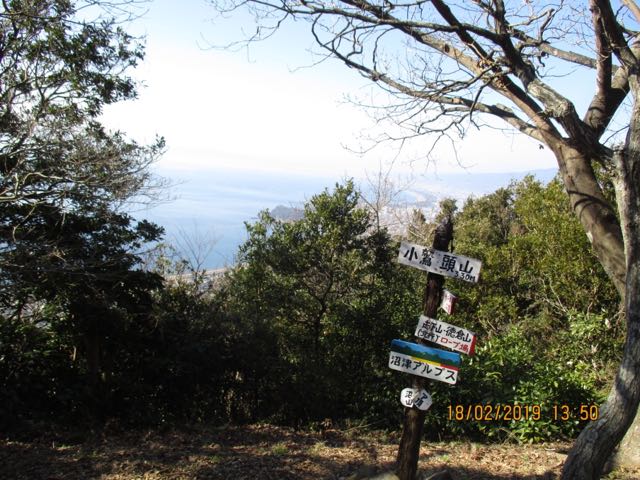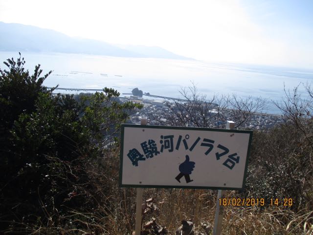 頂上は木々に覆われていたが展望が損なわれるほどではなく穏やかな駿河湾が見通せた。