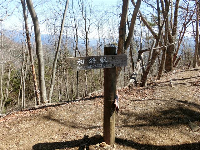 尾根を下り、初狩駅への標識を左に折れる。