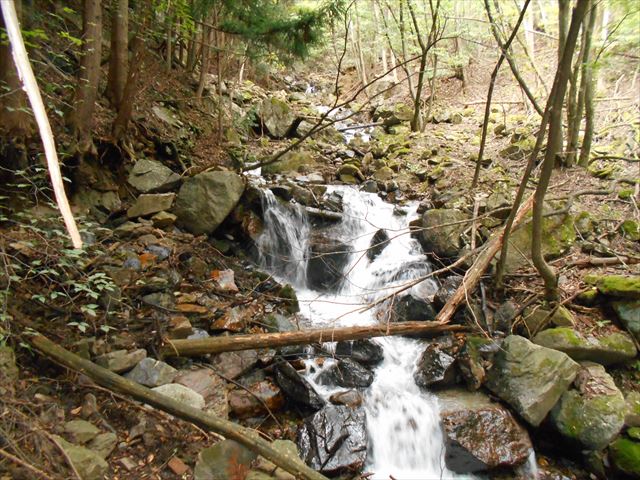 沢沿いに歩く。滝も出てくる。