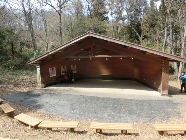 東屋の陽だまりで昼食にしました