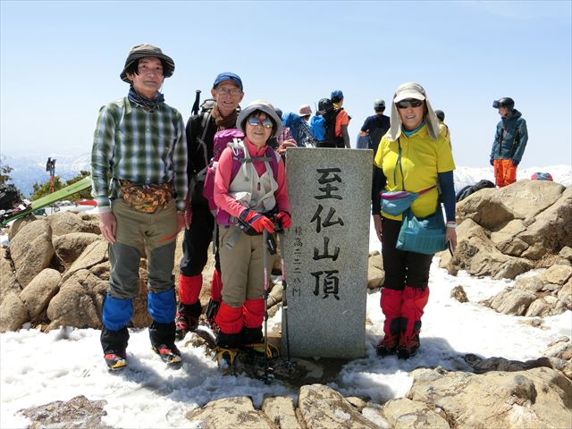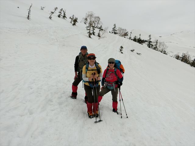 風も弱くまずまずのお天気(^^♪ 途中で燧ケ岳が見えた時には歓声があがりました。しかし、登山道で出会ったのはほとんどがスキーヤーとボーダーで、