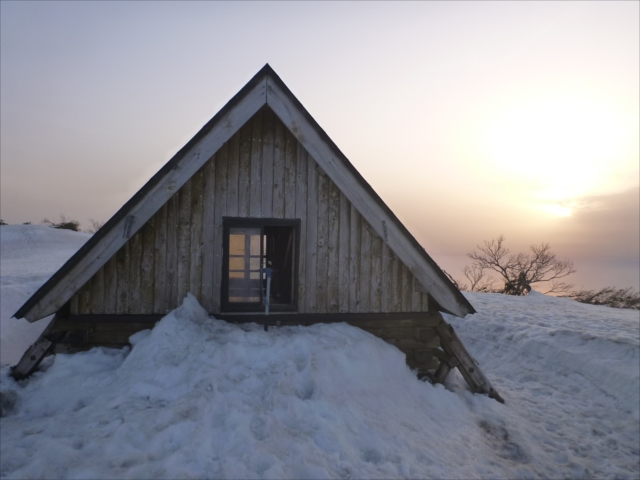 荷物を入れて避難小屋の外に