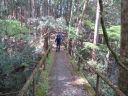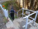 寸庭橋を渡り終えると、右に大多摩ウォーキングトレイルの標識がありここからも大塚山行けるようですが、左の舗装された道から行きます。写真にあるように苔むしたちょっと頼りない橋をわたり、登山道に入っていきます。
