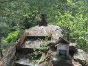 頂上からは「鉄五郎新道コース」「丹三郎コース」「御岳山への道」に分かれていましたが、計画通り丹三郎コースを下りました。 丹三郎コースは特に危険な所もなく緩やかな下りの道でしたが展望はありません。 下山したところは猪よけの金網の扉がつけられ清潔なトイレが完備している墓地でした。