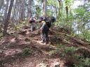 はじめは緩やかな登り道もしだいに斜度をあげ、かなりの急登に。登って行く道には移り去る季節を告げるように何処からか舞い散った桜の花びらが散りばめられていました。