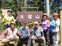 大塚山頂上近くには驚くほど大きな電波塔の施設が立っていました。 頂上はなだらかな広場になっていて、いくつかのベンチとテーブルがあり、昼食には女性陣お手製の漬ものや果物を頂き、登りの辛さを忘れるひと時でした。