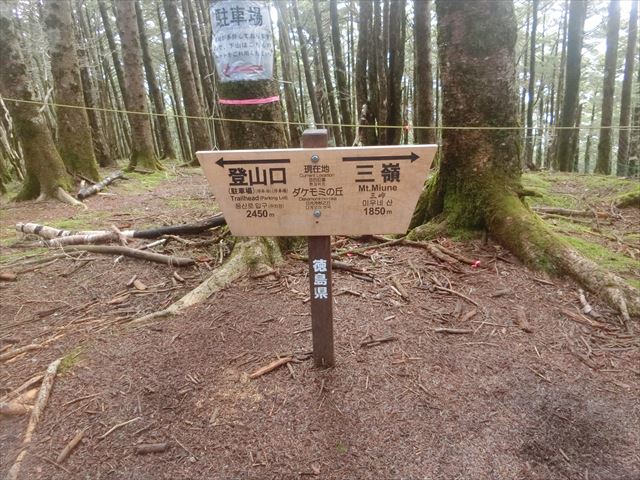 2日 三嶺 名頃登山口(駐車場) 7:50 → 林道登山口 8:40 → ダケモミの丘 9:30 → 10:50 三嶺山頂 11:25 → ダケモミの丘 12;20 →