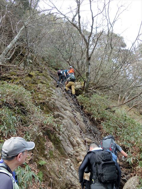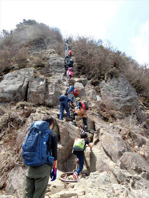 二ノ鎖は65m。立往生している人が結構いるので、時間がかかりました。涼しい顔で登るAさん。