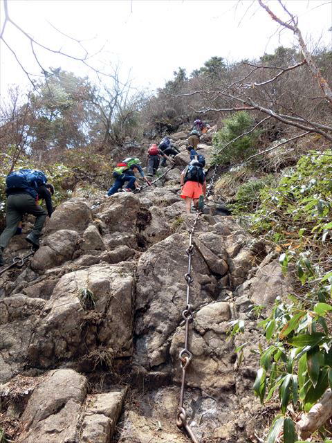 三ノ鎖は68m。下から見上げると階段状に登れそうで、楽そうですが、何本も鎖を登り、結構こたえます。