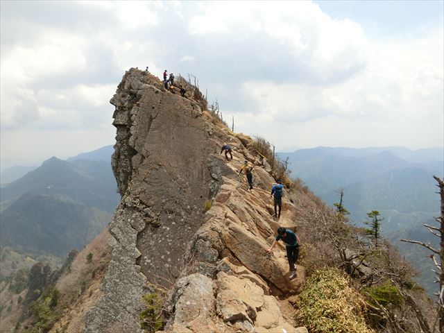 → 試し鎖 9:40 → 夜明峠 10:20 → 一ノ鎖 10:40 → 二ノ鎖 11:20 → 三ノ鎖 11:50 → 石鎚山山頂 12:00 → 天狗岳 12:40