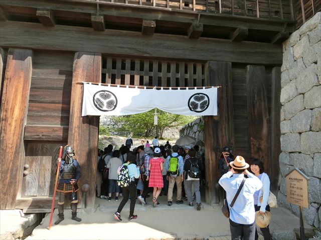 松山城は山の上にあるので、リフトとロープウェイが運航されています。立派なお城でした。甲冑姿の門番は学生アルバイトでしょう、若い女性に人気がありました。