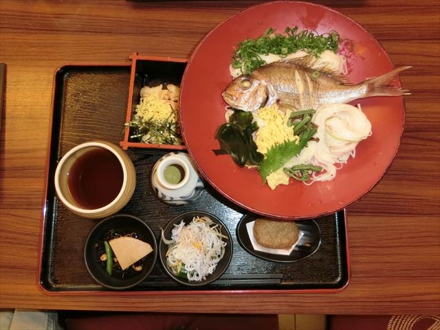 愛媛と言えばポンジュース、蛇口からジュースが出ます。お昼は、五志喜(七が3つ)の鯛そうめん。西日本はやっぱり鯛です。