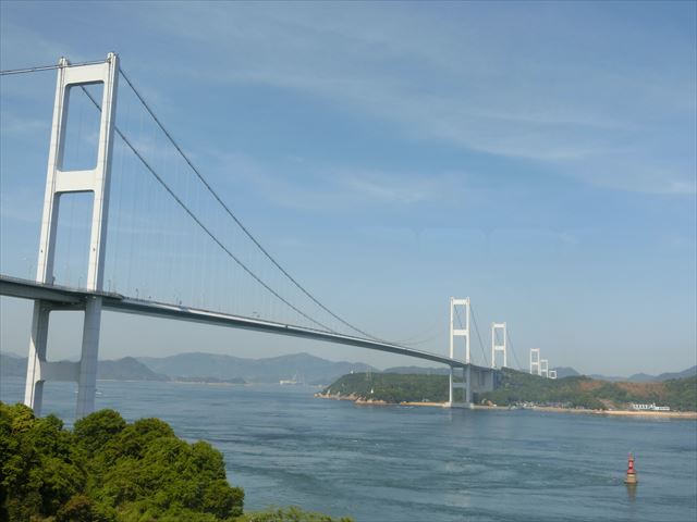 松山城の後は、しまなみ海道までドライブ。来島海峡大橋の袂にある「サンライズ糸山」まで行きました。ここから、大橋が間近に見えます。