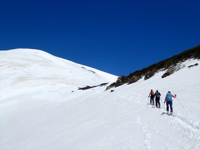 火打山へ向けてトラバースしていきます