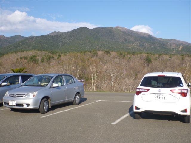 アポイ岳をアポイ山荘駐車場から見る