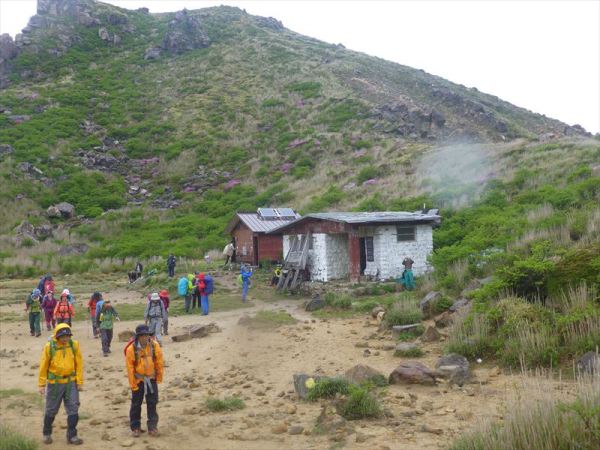 「久住分かれ」の避難小屋に到着しました(暖かい小屋でした)