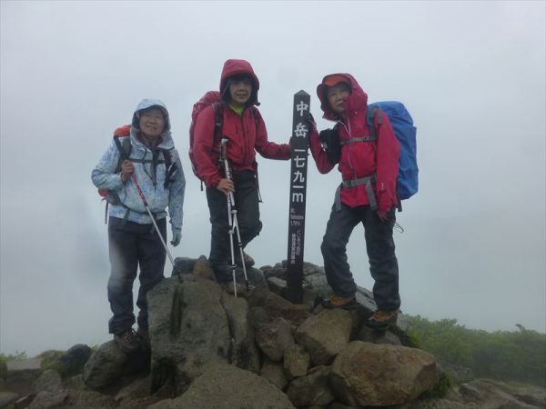 中岳に到着。ガスってしまいました