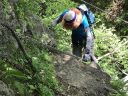十二ヶ岳まではあっという間。梅雨前の曇り空だったので、あまり展望を期待していなかったけれど、ずっと富士山が見える贅沢な山行。毛無山から進むと、アップダウンのたびに、一ヶ岳、二ヶ岳と続く。2年前の個人山行に「十ヶ岳は振り返らないと見落とす」と書かれていたが、結局どこだったのか、見落としてしまった。「十一ヶ岳から先がこの山行の半分と言ってもいい」と書かれていた通り、遠目に見たら登れそうもない岩場が見えてきた。しかし、しっかり捕まるところがある、登りごたえのある岩場とスリル満点の吊り橋、そんな中にも花がいろいろ咲いていて、本当にたくさんの魅力のある山でした。