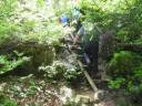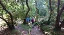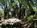 【期 日】2019年6月16日(日) 【メンバー】 CL=NU、SA、YY、TM 【コースタイム】 伊東駅9:30-9:56鹿路庭峠ー10:05スカイヒルズ下ー10:10天城縦走路入口10:22ー10:42四辻10:44 -11:38万二郎岳11:40-12:27馬の背12:28-12:50石楠立12:51-13:25天城山(万三郎岳)13:31- 13:35万三郎岳下分岐点ー14:14涸沢分岐点14:15-15:07菅引分岐-15:19四辻ー 15:39天城縦走路入口16:10-スカイヒルズ下ー16:30富士見台バス停ー16:33鹿路庭峠ー17:02伊東駅 ※往路はタクシー 復路はバス利用 【コメント】 前日の雨から一変、快晴の登山日和となった。 電車を乗り継ぎ、伊東駅からタクシーで天城高原ゴルフ場前登山口へ。 10時20分シャクナゲコース登山開始、標高1040mからの快適な林道歩き。強風だが樹林帯の中はちょうどよい風になり、 汗もかかず、虫もよらず、勢いを増し緑濃くなった木々を眺めながら歩く。 昨日の雨の影響から、水が多く、何度も沢渡りを繰り返す。靴が濡れる、石で滑らないように沢渡りのスリルと楽しさは私だけではないです。 眼下に伊東の町が見えてきた。太い幹のヒメシャラとブナが林立している。ヒメシャラの赤い樹皮はつるつるしていて触るとヒヤッと冷たかった。 コケをまとったブナは枝を大きく広げ、光を透かして葉っぱが風に揺れていた。 『万二郎岳』到着。強風のため、少し下った眺めの良いところで昼食をとる。これから登る『馬の背』が新緑をまとってなだらかに見える。 Aさんが富士山を見つける。皆から歓声が上がった。見上げると強風のため雲が驚くほどのスピードで吹っ飛んでいく。 万二郎岳から少し下り、花は終わっていたが、心地よい『馬酔木のトンネル』を抜け、『石楠立』を通り、ヤマツツジ、 ベニサラサドウダンに酔いしれ、直下の急登のあと、最高峰『万三郎岳』登頂。割と多くの登山者がいた。 写真撮影大会となり、どの人の顔も嬉しそうだ。帰りは涸沢分岐まで岩に注意しながら、また沢渡りを繰り返し、 自然林の心地よさに浸りながら登山口に戻ってきました。 急な山行にお付き合いいただいた参加者の皆さま、ありがとうございました。下山後の温泉かけ流しの共同風呂、そしておいしい海の幸と、楽しい一日でした。 (NU記)