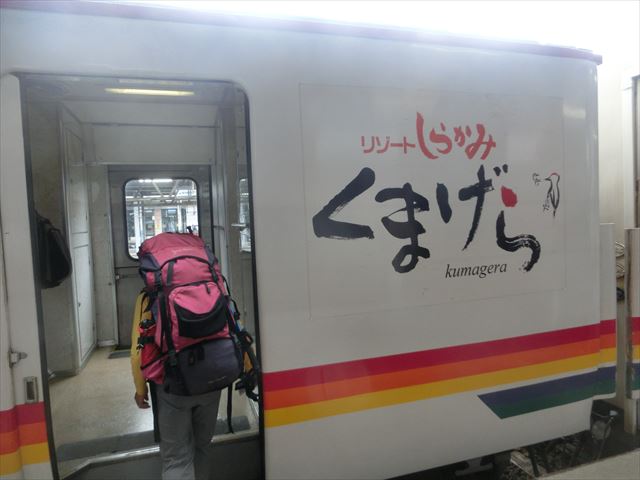 秋田から五能線に乗ります。「くまげら号」です