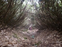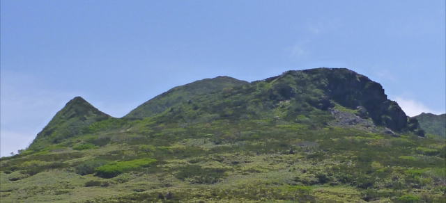 【 残雪】 薮山の前岳(1501m)に登るには残雪が欲しい。5月に登った方のHPには「前岳に残雪」、しかし15日のHP では、「6月10日パトロール第1班が「憩いの沢」付近で撮影した写真の背景になった前岳には残雪がなかった」、「現在、憩沢の雪渓は残雪が多く、融けるのはもう少し先、雪渓のトラバースは5m位」とのことであった。実際、一般路の踏み跡を歩くのに何ら支障はなかった。しかし前岳は登り口(標高1340m)から背丈を越す笹薮で、残雪を踏んで南尾根のコル(標高約1430m)まで歩けるのではないかという期待は無残にも消えてしまった。また熊ケ峰もコル(標高約1515m)から頂上(1531m)までハイマツの密薮が続いているので登頂を諦めざるをえなかった。
