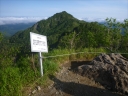 木道から代わった土道のハイマツ帯を急登して釣鐘岩と熊ケ峰の間のコルにある釣鐘岩の標識に出た。コルから熊ケ峰頂上まで標高差はないがハイマツの密薮が延々と続いている。これを見てTQリーダーは「登頂を諦めよう」と声をかけてきた。