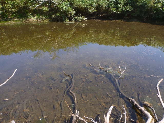 瓢箪池にはサンショウウオの卵塊