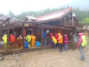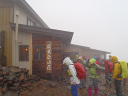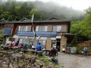 行者小屋番長で「山なめんなよ」Tシャツが大人気のカモシーと一緒に記念撮影。 その後も雨は止まず美濃戸口へ下山。ここからはバスで日帰り温泉へ行き、