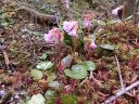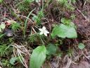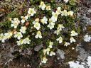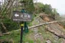 崩壊した登山道を横目に足場の悪いガラガラした道を所々にあるケルンを目指して歩いているとキバナシャクナゲ、イワカガミ、ミツバオーレンなど高山植物が荒々しい砂礫地の中で咲いていています。