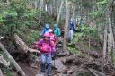 2日目の朝、雨も風も止まず激しくなる。赤岳まで行くのは危険と判断し硫黄岳山荘から下山。赤岩の頭、赤岳鉱泉を通り、行者小屋では名物のおでんやラーメンなどのお昼を食べ、