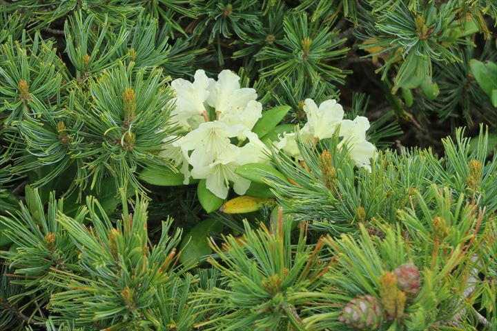 登山道脇にキバナシャクナゲ(黄花石楠花)が