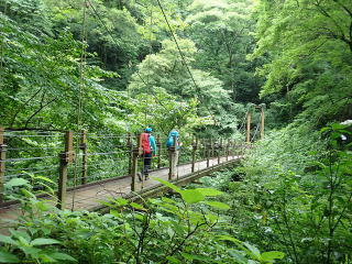 昨年タワ尾根に行くときも中央線が止まっていた記憶が蘇る。私にとって数少ない電車使用の時に限って何故か電車が止まる。出発時間を気にしながらAさんとアイデアを出し合うが時間がなかったため、JP高尾駅まで行くことにする。混雑している電車を乗り継ぎ高尾で落ち合う。結局小仏行きのバスに乗り蛇滝口から高尾山を目指すことにする。訓練なので荷物は本番と同じくらいの重さを背負うことにした。ほぼ本番と同じ物を詰めてきたAさん。私は濡れると乾かすのが大変なので、ロープやガスやアイゼン、高尾山と関係ない物をぎっしり詰め込んだ。高尾の駅でさらに大量に水をザックに詰め込んだIさん。どのザックもずっしりと肩に食い込む重さだった。しかも湿度が高く蒸し蒸しとした天気で登山開始前から体力が奪われていった。