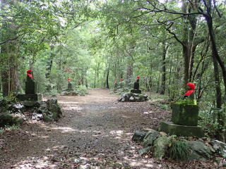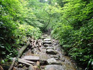 2回目はAさんお勧めの6号路を登る。沢沿いを行くちょっと涼しいコースだったが最後の長い階段にIさん、すべての体力を奪われる。私も頂上直下で幼稚園の遠足の子供に「だいじょうぶですかあ」と声をかけられてよほどひどい顔だったんだろうなあと苦笑い。2回目の登頂は13時。京王線も動き出したのか人も増えてきていた。下山は稲荷山コース。1番山らしいコースだそうだ。ただ前日の雨と水はけが悪いせいかドロドロの道が多かった。又外国人も多かった。下山するとポーンとケーブルカーの乗り場に出た。