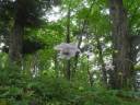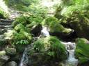 休憩所のそばの渓流沿いに荷物を下ろし、早めの昼食休憩です、リーダーが用意をしてくれた”具沢山のなめこ汁”ゆっくりくつろいで食後のコーヒーを淹れ甘未を楽しみながら、緑いっぱいの木々から溢れるフィドンチッドのなかオゾンいっぱい癒しの空間を楽しみました。「こんな山行も良いですね!」で一致。