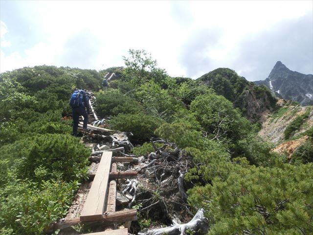 荒れたところを登っていきます。階段がついていました