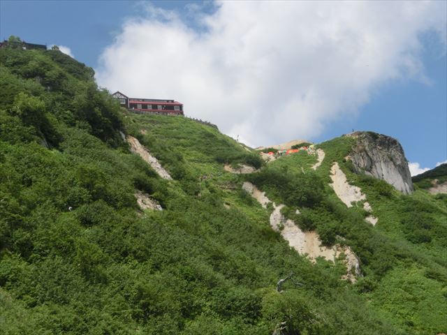 燕山荘が見えていますが、登りはきつい!!