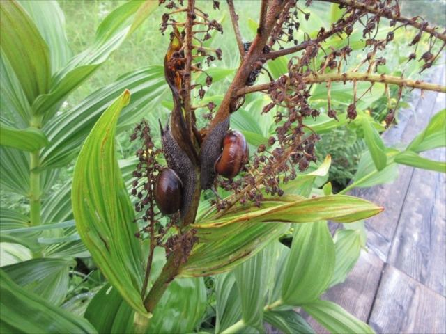 栂池湿原 カタツムリも朝食?