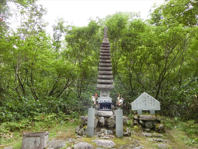 愛知大学生遭難の碑、十三重の塔に手を合わせてしばらく行くと登りがきつくなってきます。
