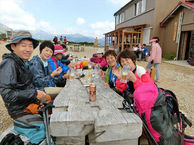 小屋に到着するころにはSさんも調子を取り戻しみんなでお疲れ様のビール!