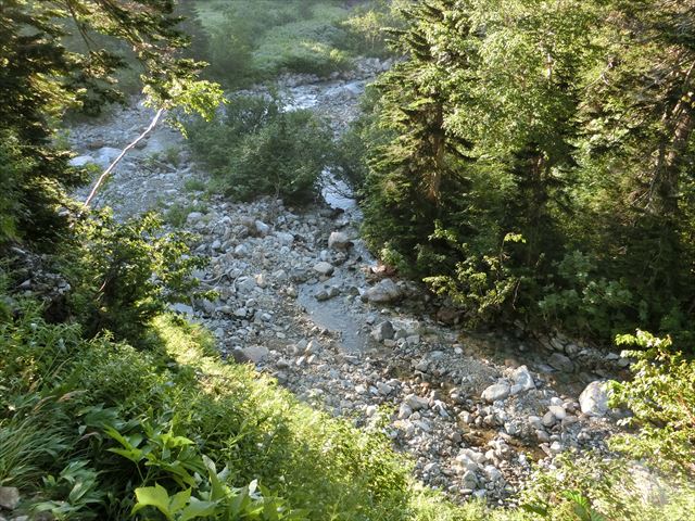 昨日の登山道を通って岩苔乗越に出るコースでなく、2時間も短縮できるコースにした事を聞いていたので気持ちは少し楽だった。高天ヶ原山荘を4時に出発。