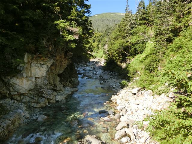 薬師沢小屋。この先が奥ノ廊下で赤木沢があります。