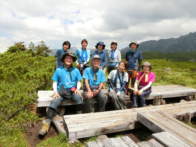 天気は晴れ。集合場所の富山駅へ夜行バス、新幹線で男性3名、女性7名の合計10名があつまりました。ここから登山口の折立まで電車バスを乗り継ぎます。